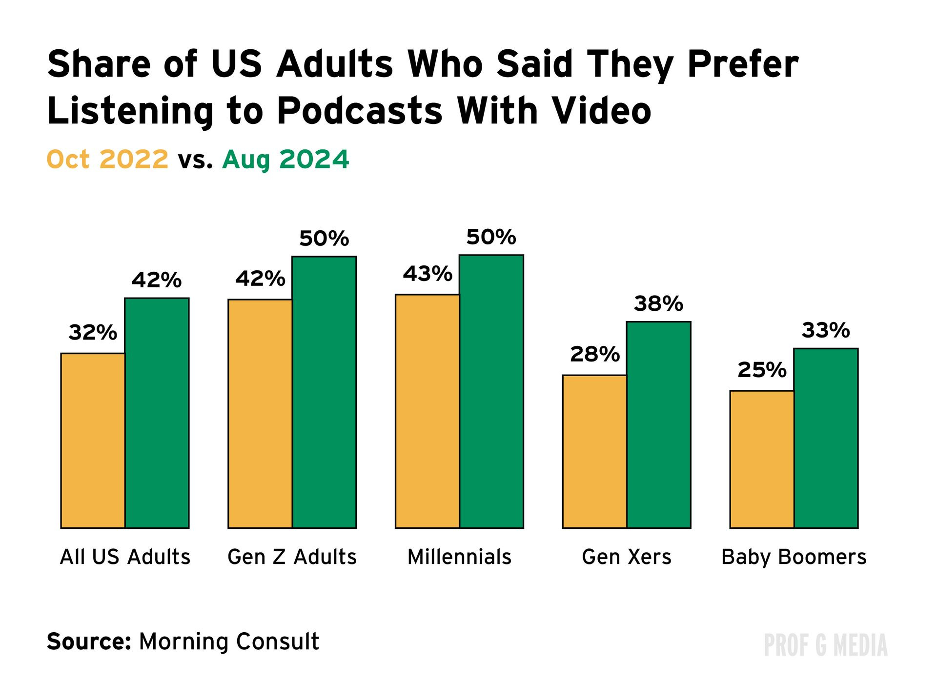 We’ve seen this preference play out over decades. The radio flourished until TV came along. Fast-forward a century, and the podcast industry, traditionally audio-only, is increasingly a visual medium. Video podcast viewership increased by 40% year over year in 2025, whereas growth in traditional audio podcast listenership was closer to 7% over the same period. That’s why Spotify recently announced a partnership with Netflix to distribute podcasts on the streaming platform.