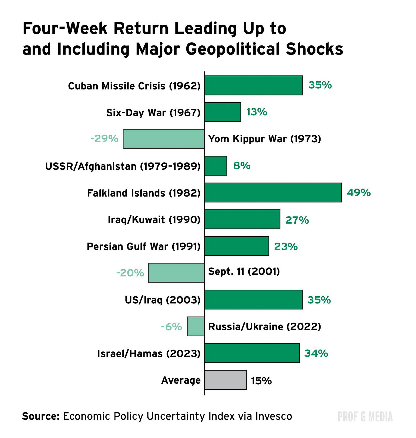 A different analysis found that the S&P 500 actually performed better in the 12 months after conflicts, returning 15% on average — higher than the index’s average annual return of 10%.