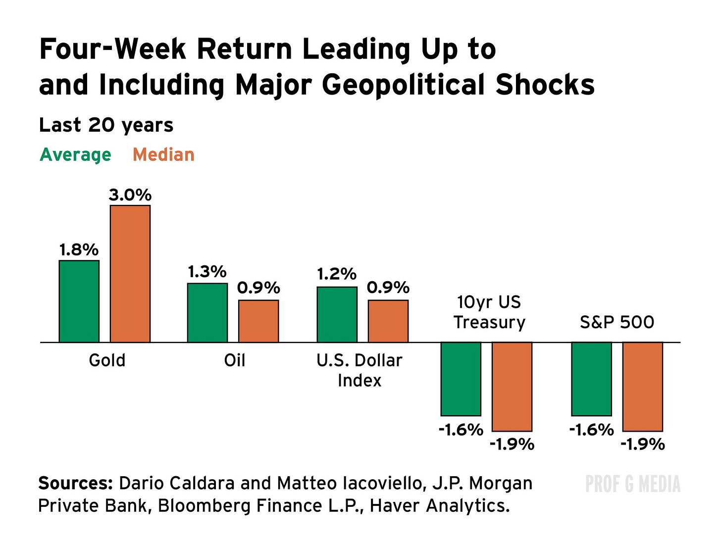 But over longer periods, markets are surprisingly resilient. One JP Morgan study of 40 armed conflicts and terrorist attacks found that in the 12 months after the event, S&P 500 returns were not statistically different from peacetime.