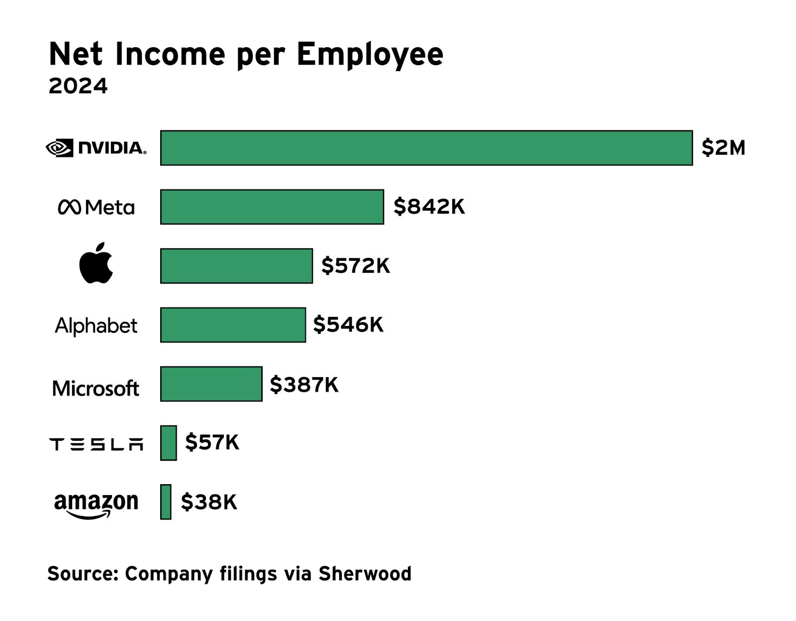 It’s also a model of efficiency internally. Since 2022, Nvidia has grown its revenue by 385%, while headcount has only increased 60%.