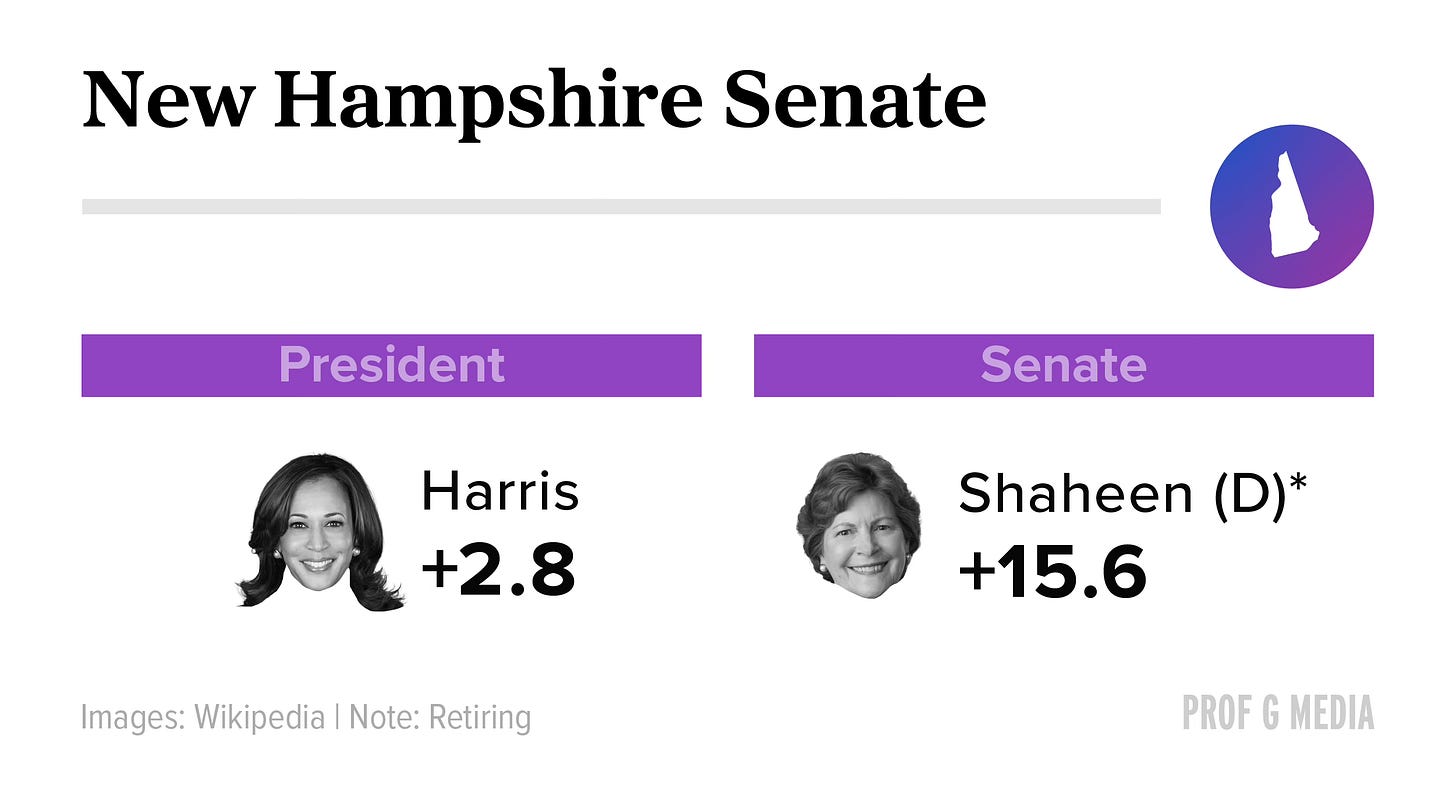 Democrats are also playing defense in New Hampshire. It’s easy to assume that this state is already in the bag. Despite talk last cycle that the Granite State could surprise, voters gave Kamala Harris a 2.8 point victory. The state’s healthy supply of college-educated voters should help keep it in the party’s hands.