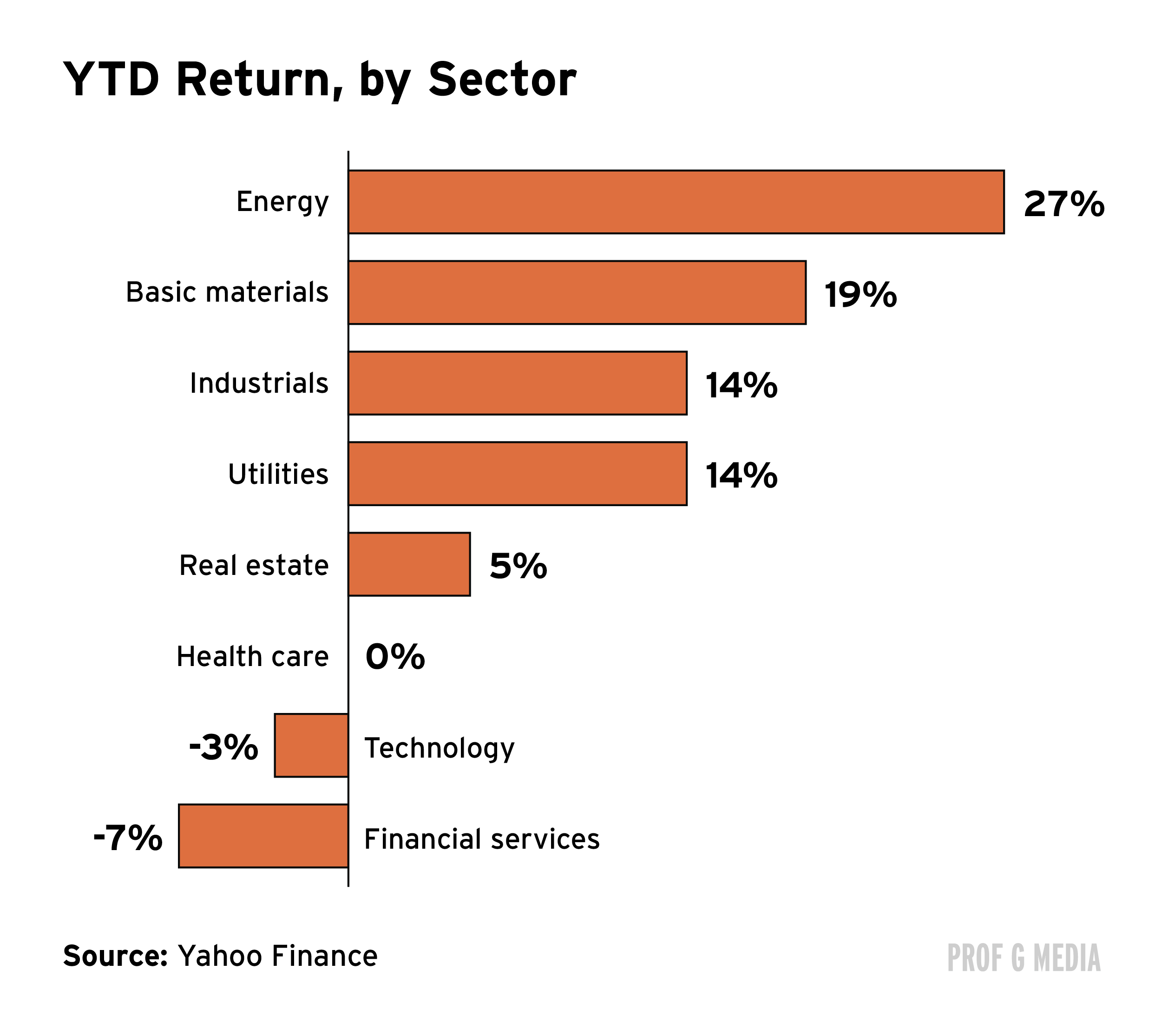 The deeper story here is a revaluation that I flagged on February 9: The market has been overpaying for asset-light SaaS companies and underpaying for companies with real, heavy assets. Here’s what that correction looks like year to date — energy up 36%, materials up 10%, utilities up 9%, staples up 7%, industrials up 6%, real estate up 5%. Every one of those sectors owns things a chatbot cannot replace. Metal, steel, timber, bricks. That’s the adjustment we’re watching play out.