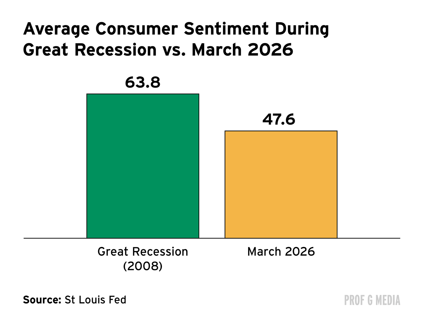Meanwhile, consumer sentiment has dropped to its lowest level ever. In other words, consumers feel worse about the economy now than they did during the depths of the Great Recession.