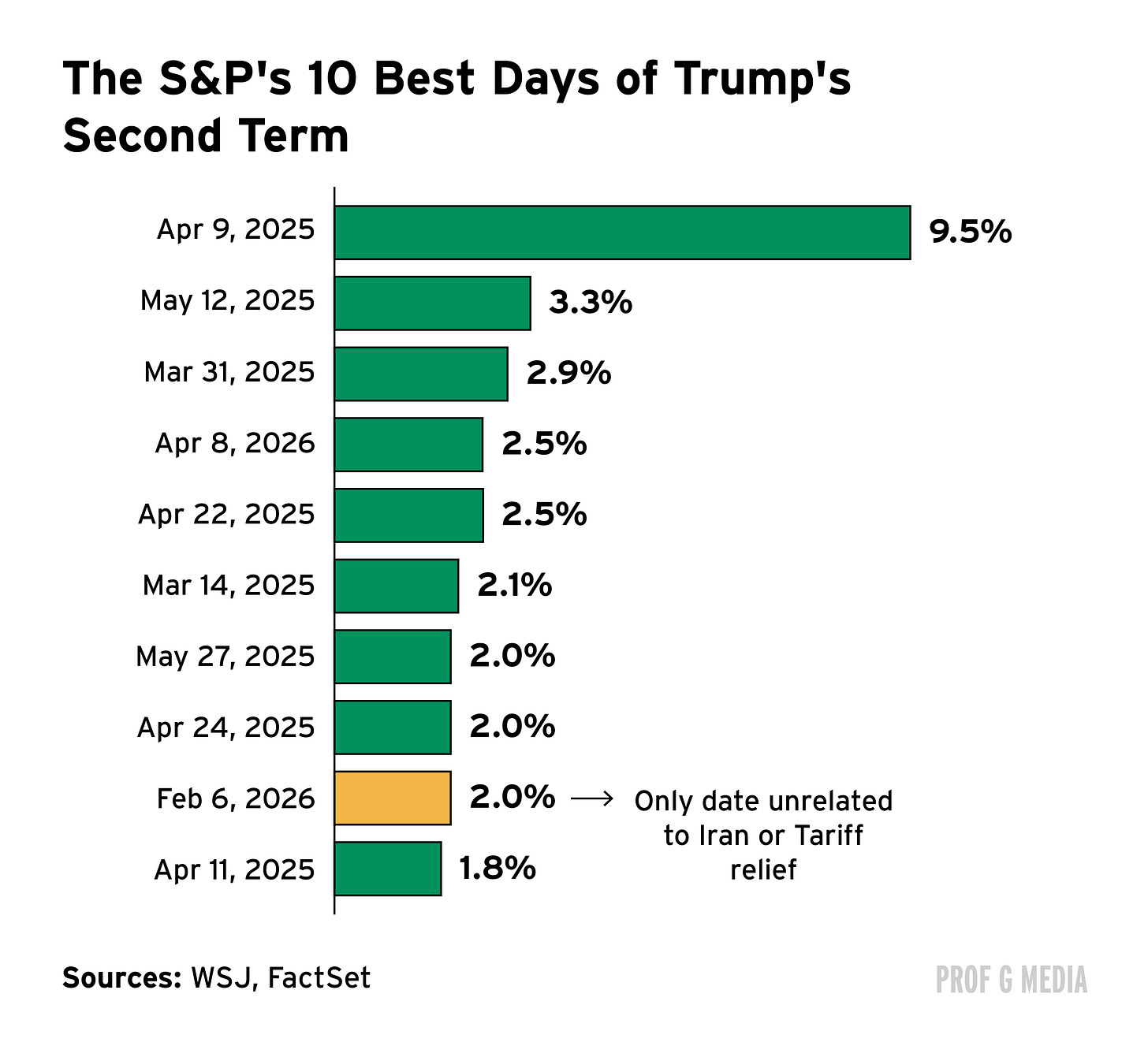 Nine of 10 biggest S&P gains have been tied to Iran or tariffs