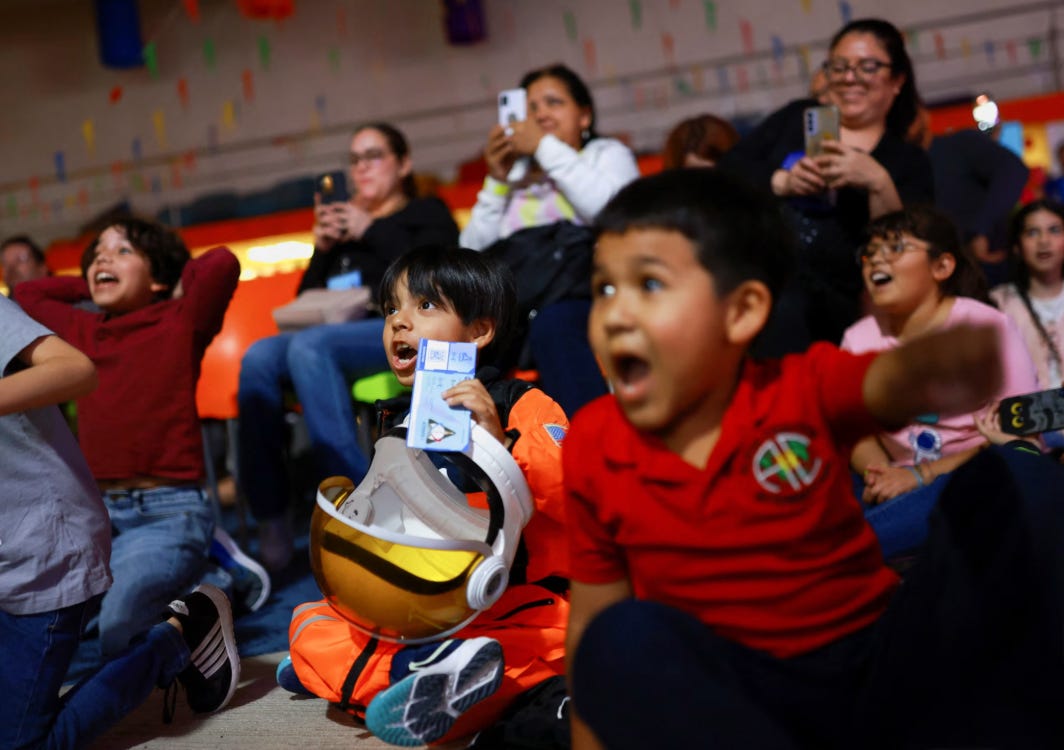 Children in Juárez, Mexico, watched the launch livestream of NASA’s Artemis II mission. Source: Jose Luis Gonzalez/Reuters