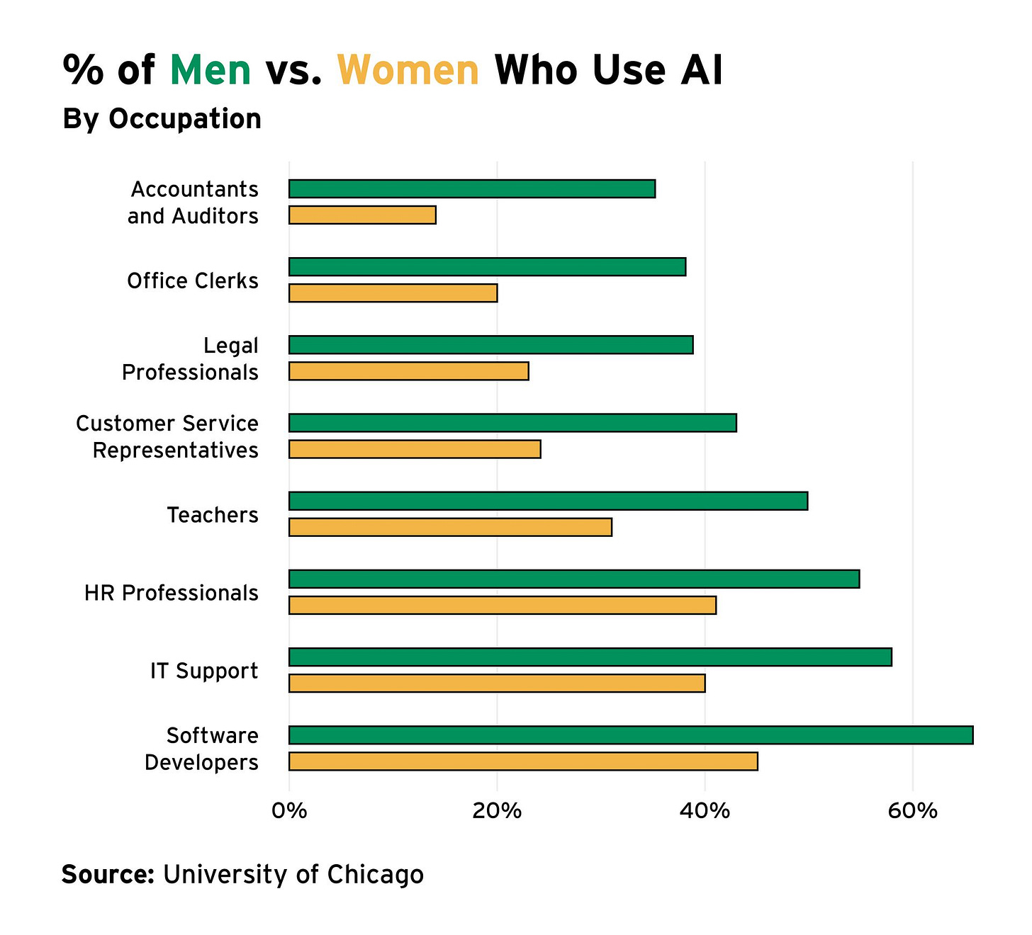 Findings from the University of Chicago add weight to this theory. When workers were asked why they weren’t using AI, women were 11 percentage points more likely than men to cite a lack of training as the reason.