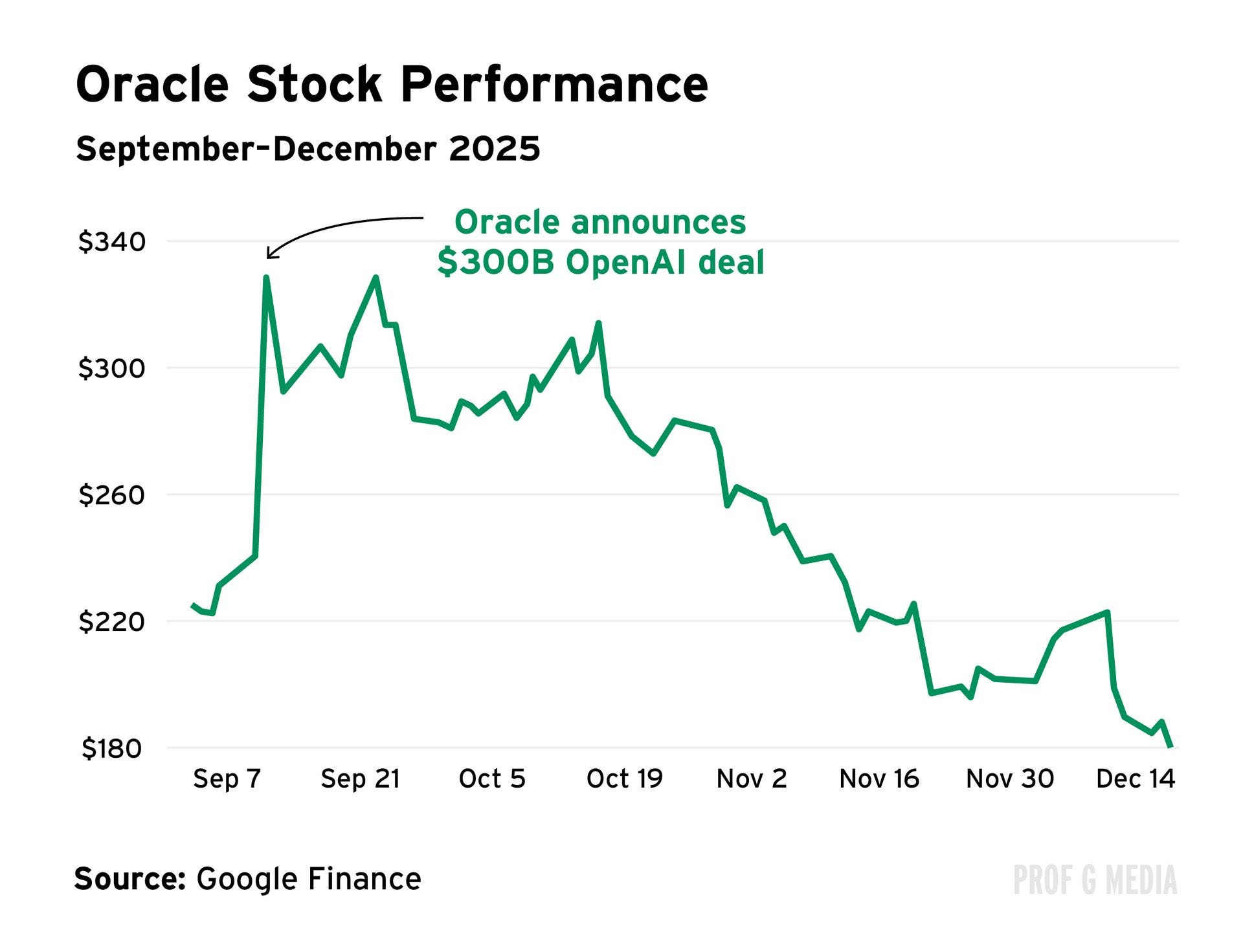 Oracle’s stock is now trading nearly 45% below its September peak. What happened?