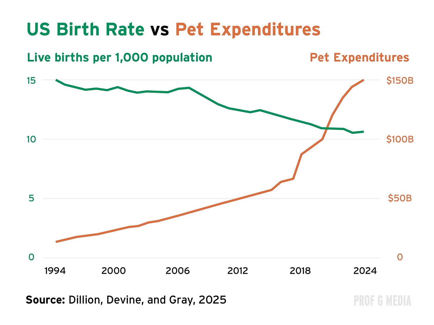 As Americans have fewer children, they’re spending more on pets. Psychology researchers from the University of North Carolina at Chapel Hill and The Ohio State University found that at both the national and county levels, lower U.S. birth rates were strongly associated with higher pet expenditures.