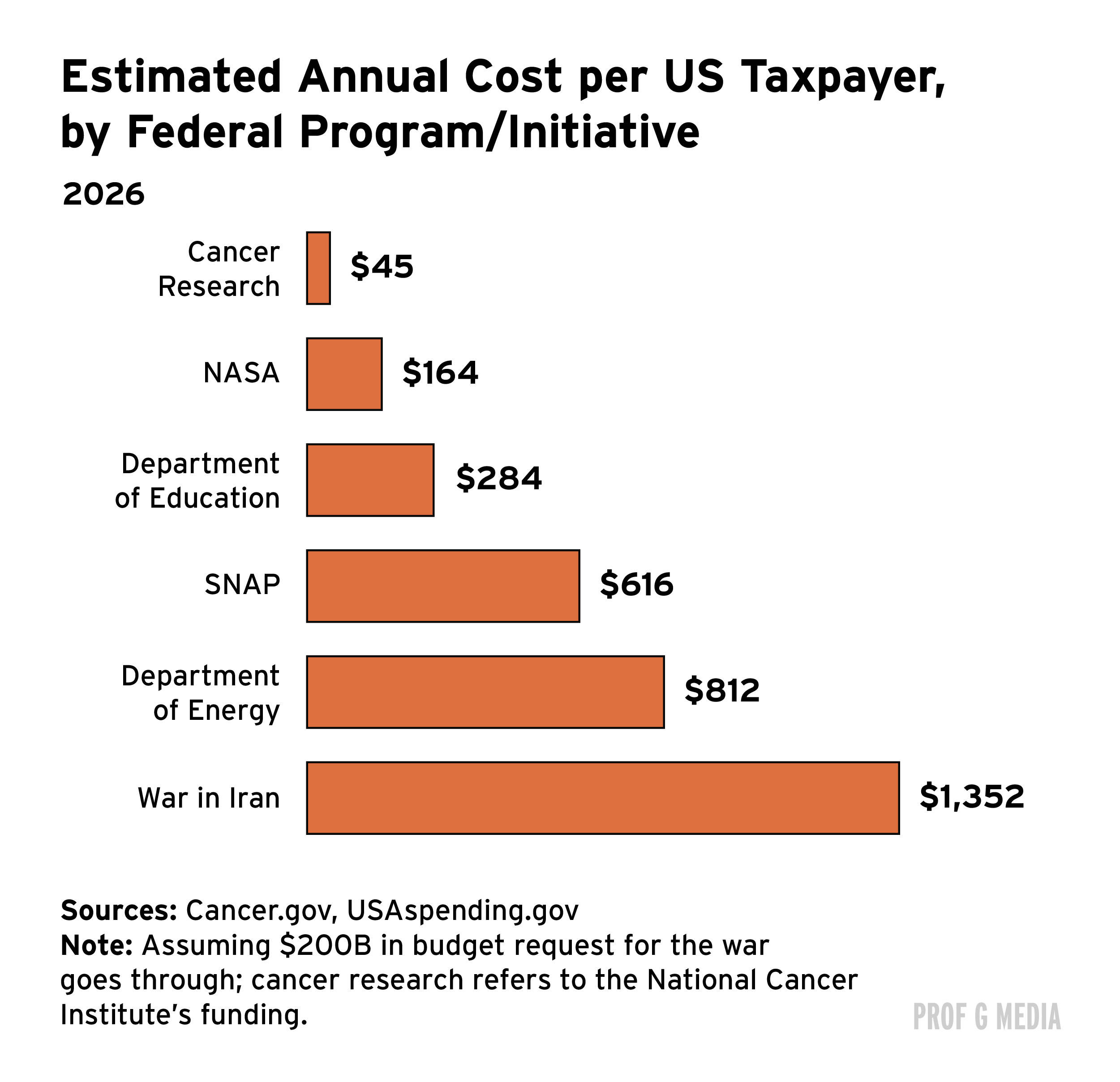 On an individual taxpayer basis, the war has already cost you nearly $140. If the additional $200 billion in funding goes through, the cost per taxpayer would be about $1,400. Do you have anything you’d rather spend $1,400 on?