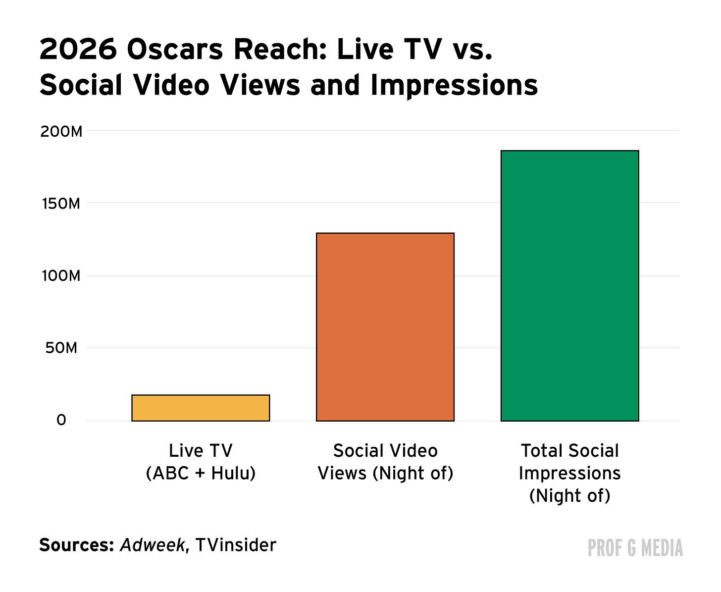 The live Oscars on ABC are a Trojan horse. The live event is really just a vehicle for the clips that get put out on social media the day after — that’s where people are consuming all of this content.