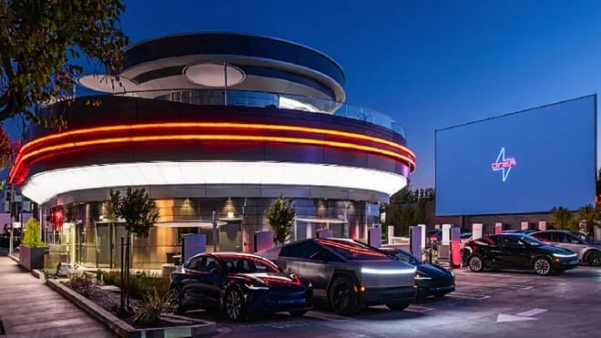 Elon Musk is known for ambitious promises that rarely arrive on time — full self-driving by 2016, trips around the moon by 2018, humans on Mars by 2026. But last week, he finally made good on one. In 2018, he floated the idea of a restaurant and drive-in theater at a Tesla Supercharger in LA. Seven years later, it’s real.