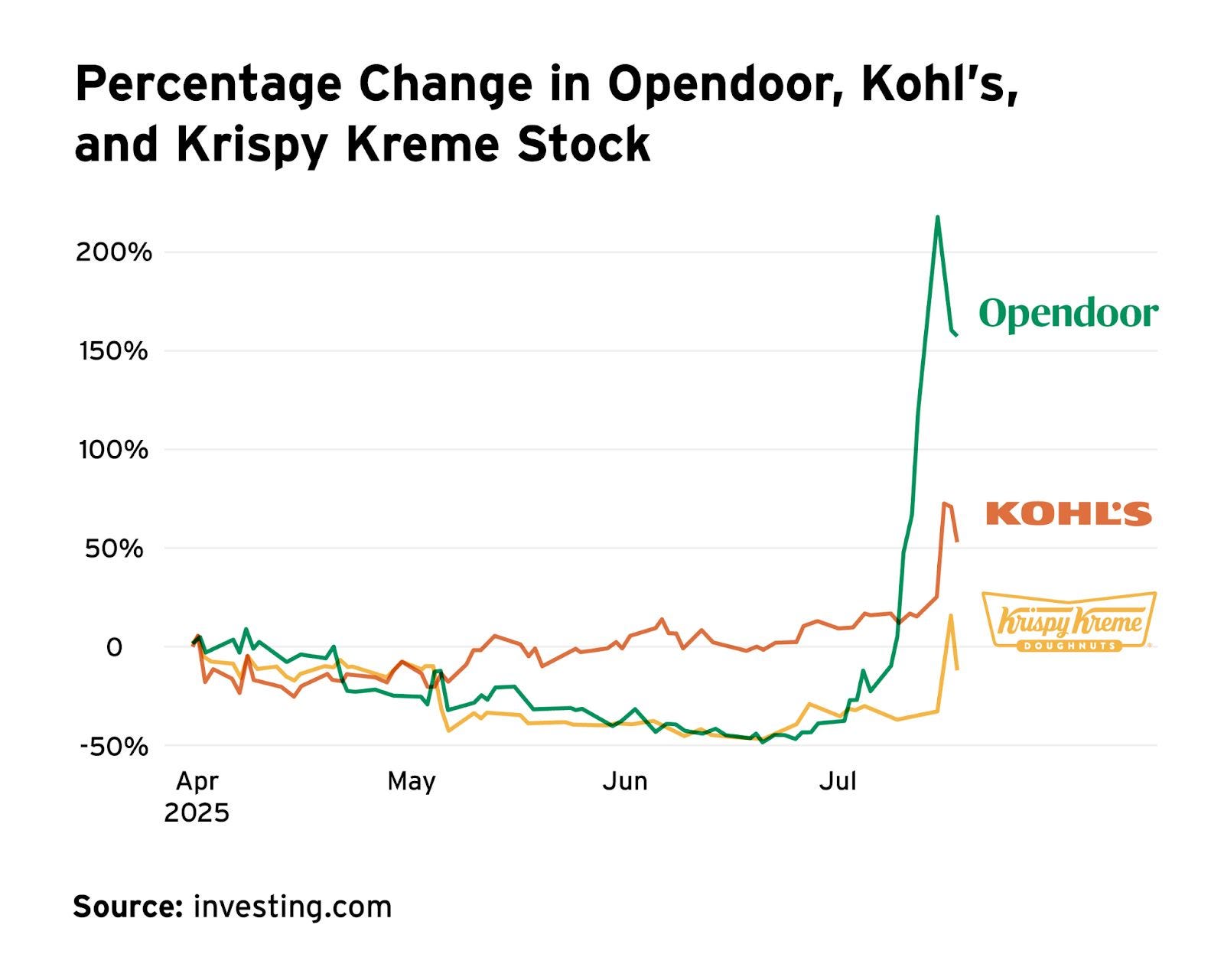 Retail traders have christened a new class of meme stocks. Opendoor, Kohl’s, and Krispy Kreme all surged last week.