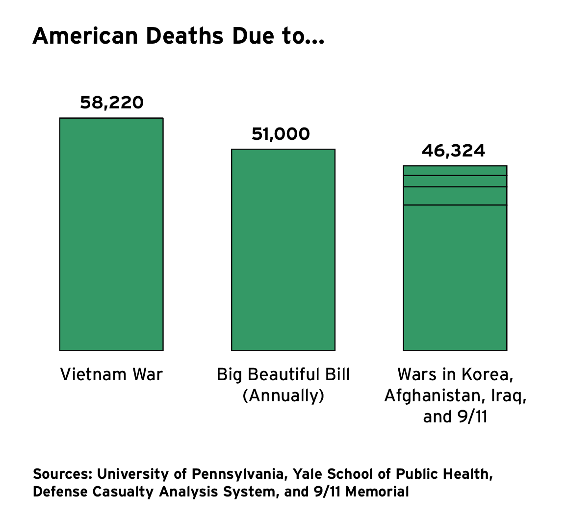 According to the Congressional Budget Office, the bill would add $2.4 trillion to the deficit over the next decade. But it’s not just fiscal fallout. Researchers from the University of Pennsylvania and Yale warned the bill’s proposed cuts to Medicaid and nursing home funding could lead to 51,000 additional deaths per year.