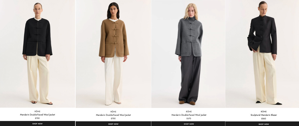 Other Western brands are also capitalizing on this shift. In October, Moncler debuted its first Chinese collaboration with designer brand Qiuhao. Prada opened its first independent dining space in China. Amsterdam-based brand Rohe launched its own signature “Mandarin” jackets.