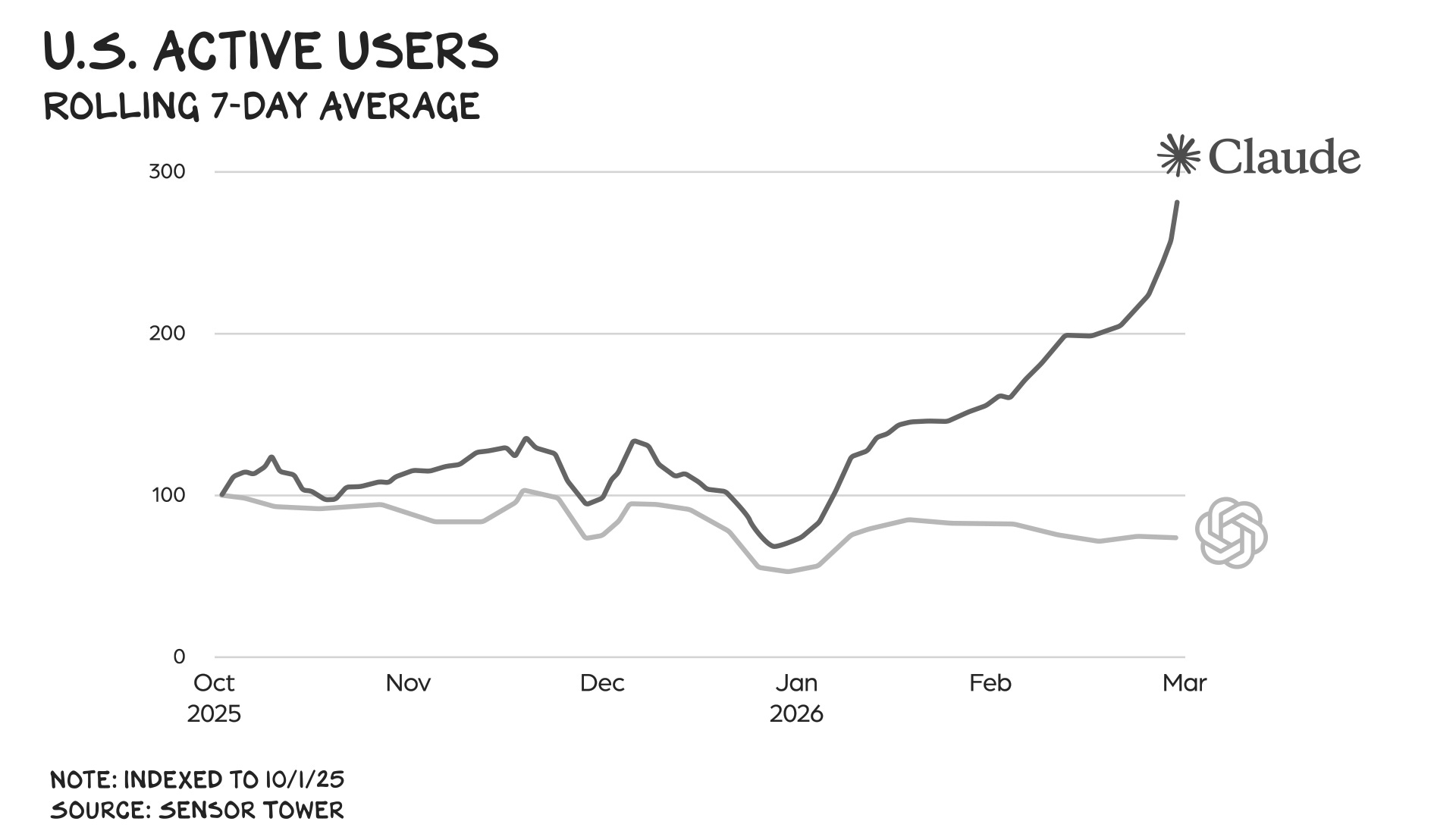 In contrast, Amodei stood up … for humanity, safety, and the rule of law: Companies have the right to do business with the government, as well as the right to decline, without fear of punishment. Publicly, Altman supported Amodei, but in private he did the deal Anthropic wouldn’t. The following day, after news of Altman’s deal broke, U.S. uninstalls of ChatGPT increased 295%, and Claude climbed to No. 1 in the App Store. Anthropic’s annual recurring revenue surged to $19 billion, from $14 billion just a few weeks ago, adding an estimated $150 billion to its valuation. Altman / OpenAI came across as reckless, duplicitous, and self-serving. Amodei / Anthropic came across as safety-conscious, honest, and selfless.