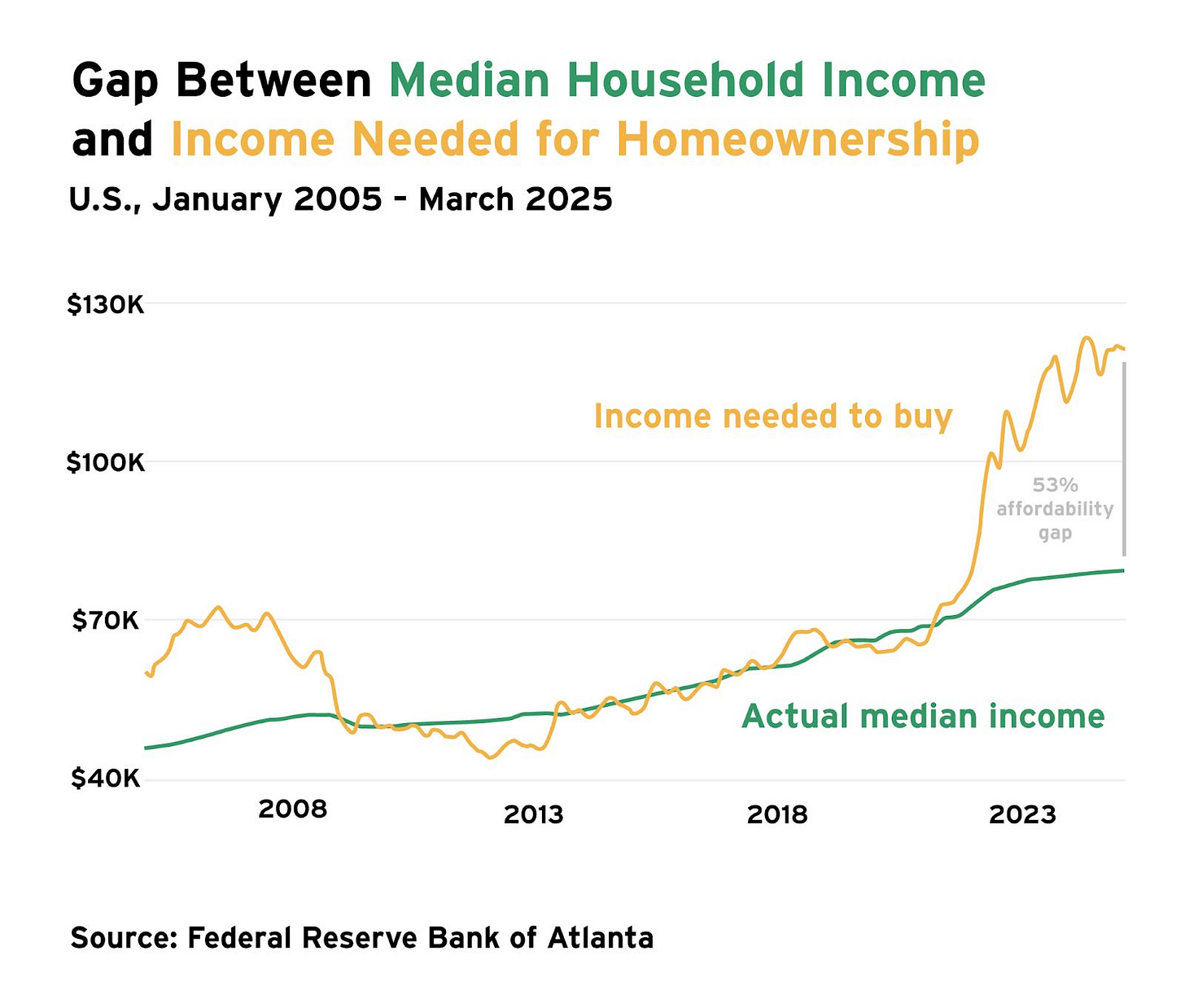 This definition resonates, but against today’s economic backdrop, it’s also disheartening. For generations, we’ve been told that homeownership is the key to building wealth. But today, 70% of American households can’t afford to buy the median home. Does that condemn us to financial anxiety and the constraints that come with it?