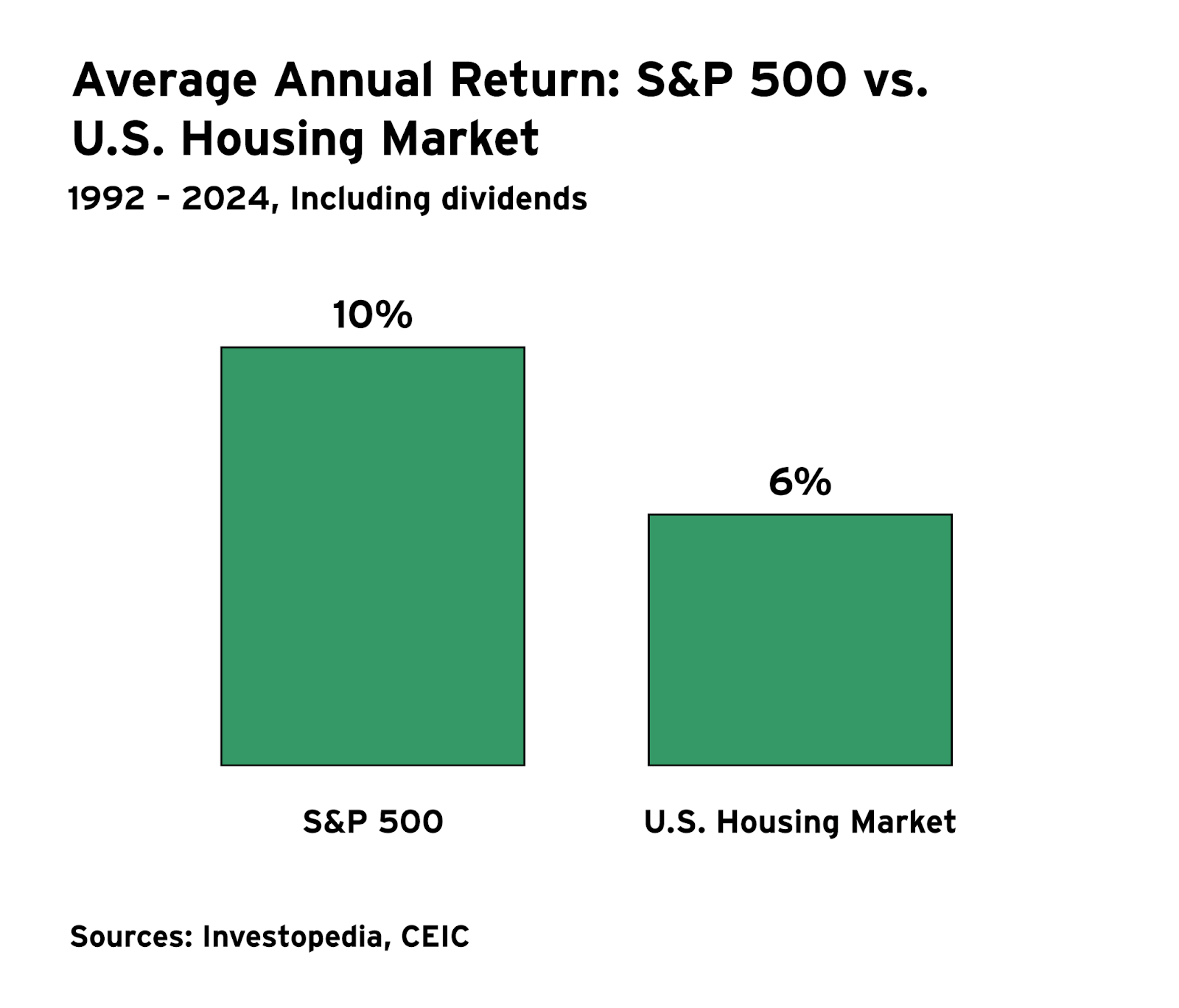 Homeownership isn’t the only path to financial security. Renters can achieve similar or even better financial outcomes by investing what they save on down payments, closing costs, property taxes, and maintenance in diversified portfolios. While residential real estate typically appreciates at 4%–8% annually, the S&P 500 has historically delivered around 10% average annual returns.