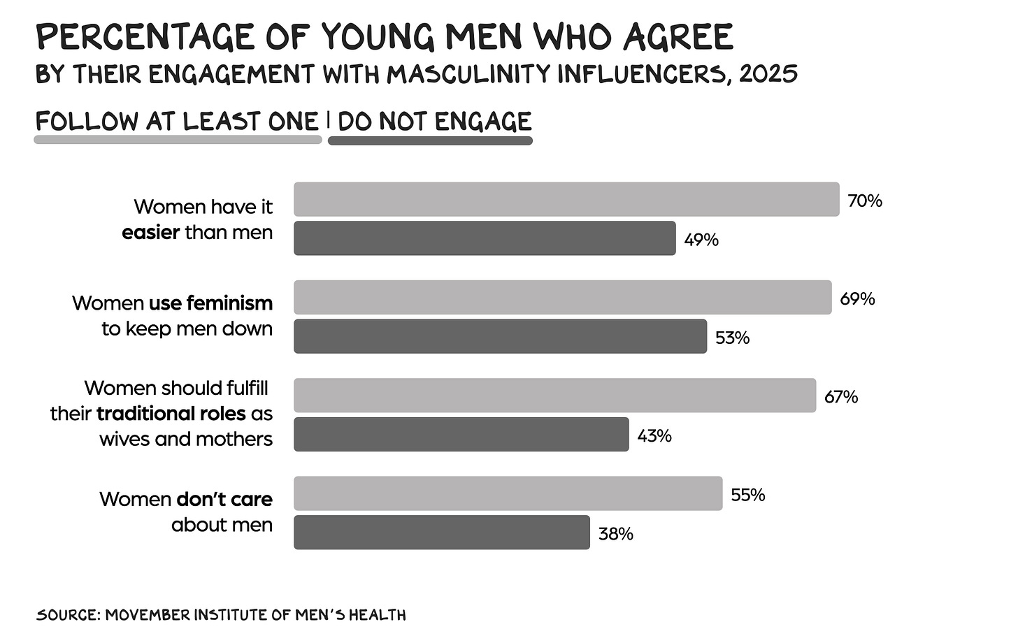 Many young men struggle with mental health — understandable given the challenges they face. But here’s a truth the manosphere won’t tell you: In the end, meaningful relationships are the only things that matter. If you’re alone and resigned to being nutrition for Big Tech, you need to reset and commit to becoming voluntarily incelibate. If you sequester from other mammals, the anxiety and depression you’ll ultimately feel will dwarf any terror about disappointment that exists in the outside world — isolation is the only danger that compounds.