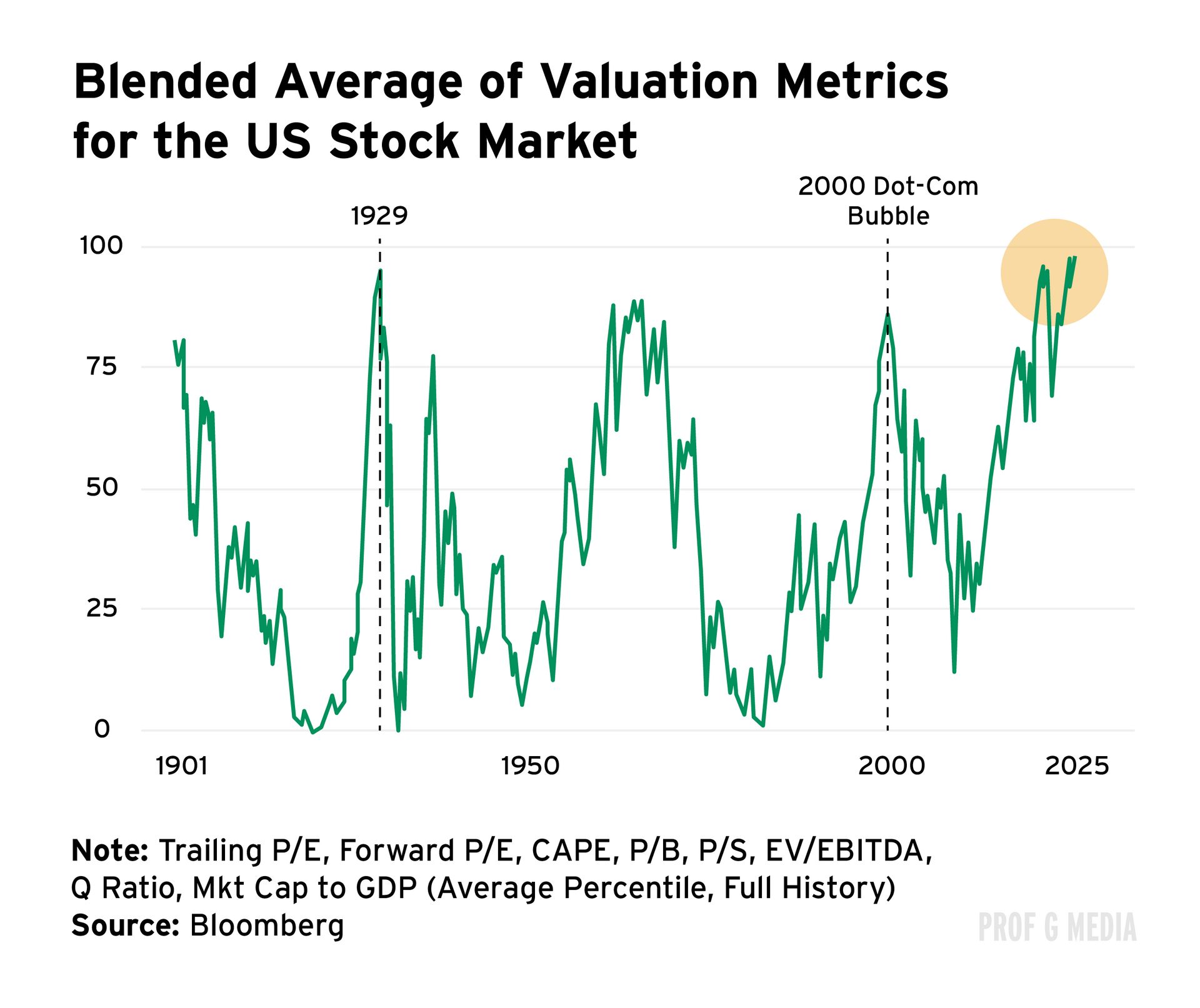 The index has traded above 22x only twice since 1985: during the dot-com bubble and the COVID-19 pandemic. The market fell sharply both times.