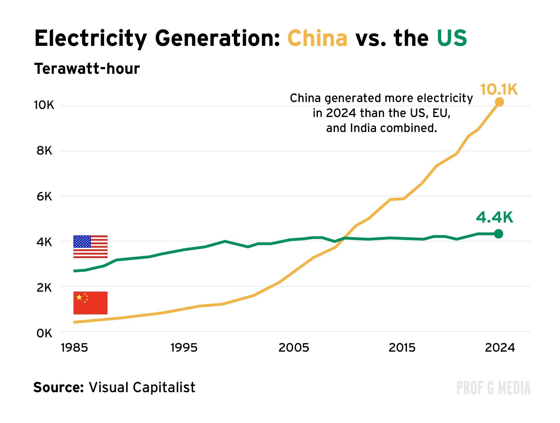 Why are Chinese AI models so cheap? Energy. China produces 2x more wind power, 3x more solar, and 6x more hydroelectric power than America. That, plus government subsidies, makes their electricity half as expensive as ours.