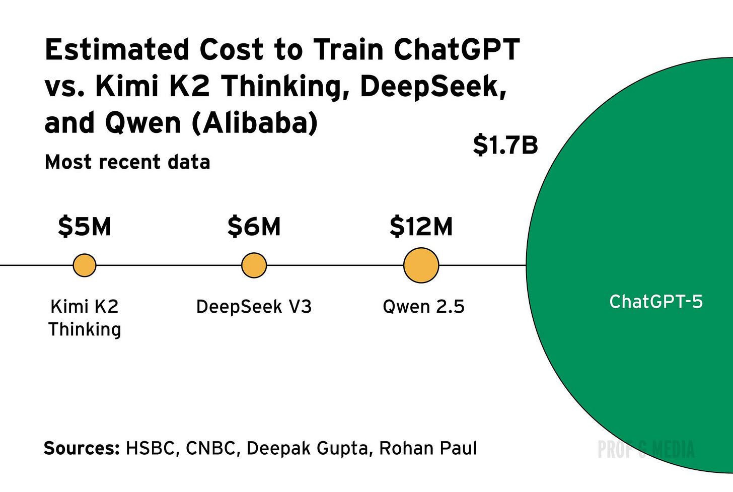 The most important part of this story is the price disparity: Kimi K2 costs $2.50 per million output tokens — that’s 4x cheaper than GPT-5 for comparable performance. Chinese AI models from Alibaba and DeepSeek are also roughly 10x less expensive than American alternatives.