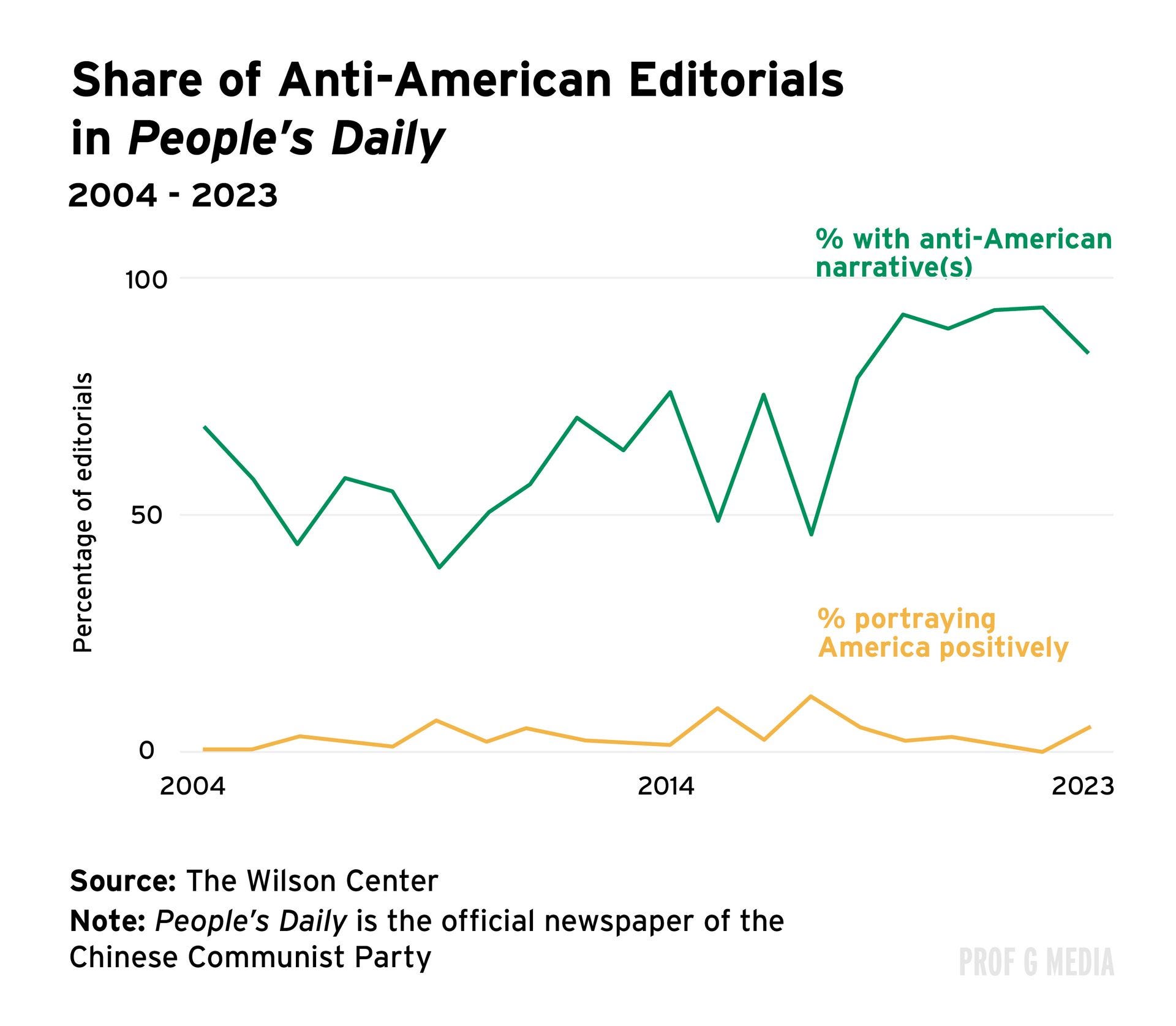 Why is this happening? I’m inclined to believe it was probably Trump. Chinese state media dramatically ramped up anti-American rhetoric during the first Trump era, creating criticism that shaped public perception.