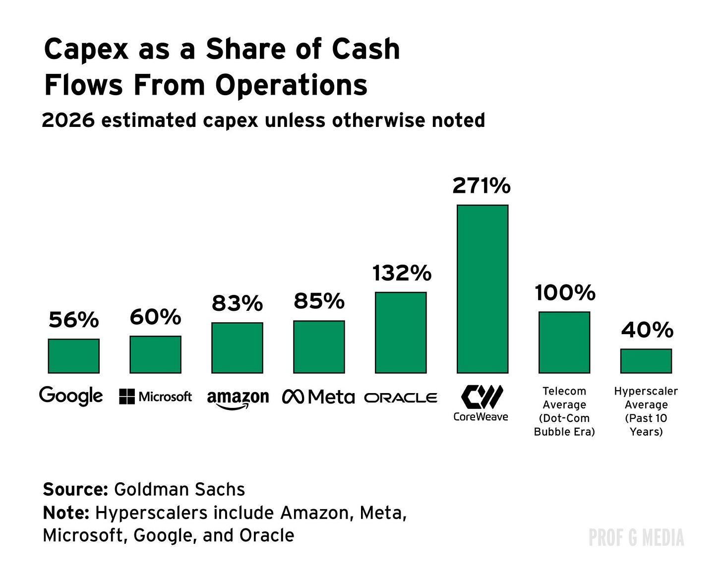 Oracle’s capex is expected to reach over 130% of its operating cash flow next year, and it doesn’t expect to return to profitability until 2030. Plus, roughly 60% of its contract backlog is tied to OpenAI.