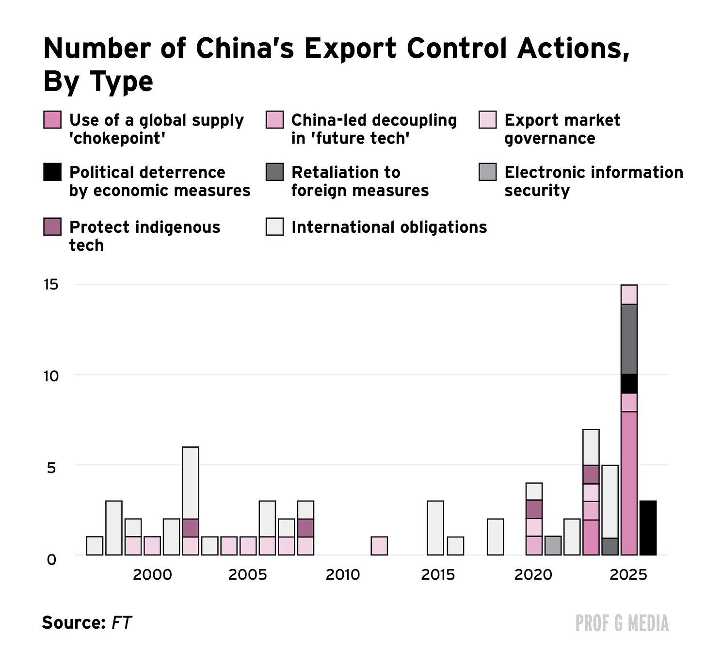 That vagueness is the context for a broader pattern. China has nearly tripled its use of export controls over the past five years.